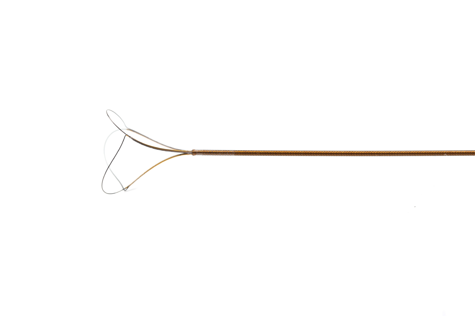 取石网篮由网篮(镍钛合金丝)、销管、网篮连接杆和手柄等组成,网篮由3条或4条镍钛丝编织而成,产品呈线性管状。